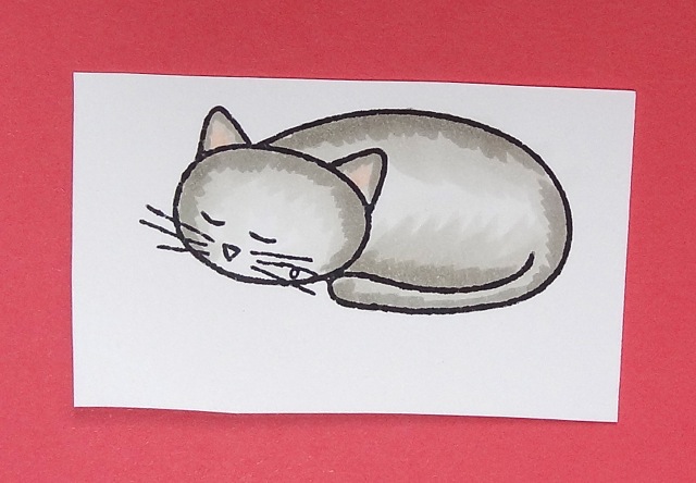 I colored the image using W0, W1, W2 and W3 Copic markers I also used a R01 for her nose and ears. I then proceeded to blend the colors to what you see in the final card.