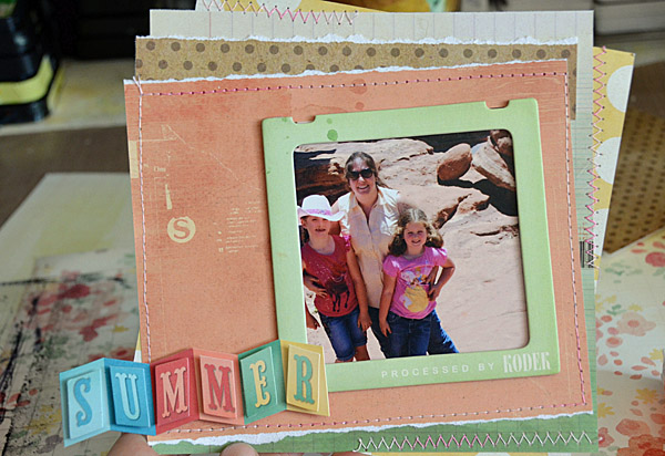 I love how the peaches and greens worked well with all that red rock in my background, and that my girls bright pink shirts still looked nice and not too, well, pink for the page.
