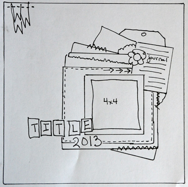 Not a scrapbooker? Look at my sketch and notice that if you removed the 4×4 photo and instead did something with a feature stamp image you could build a cool card or tag.
