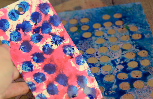 Don’t forget that you can also use the stencil itself and ‘stamp’ in addition to use up that excess spray after misting. You can also layer stencils over each other – just make sure each time you let it dry totally so you don’t end up with a muddy look.