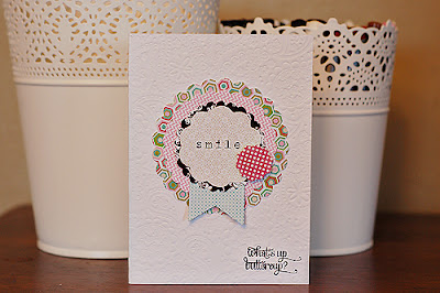 In this beauty, you see Lily Bee items like: Handmade 6 x 6 Paper, Handmade Bag of Bits, Handmade 12 x 12 Alphabet Stickers!  You can also achieve circles like this with Grand Scalloped Circles or the Scalloped Circle Large Die.  Try some Glue Dots to make the ribbon pop!