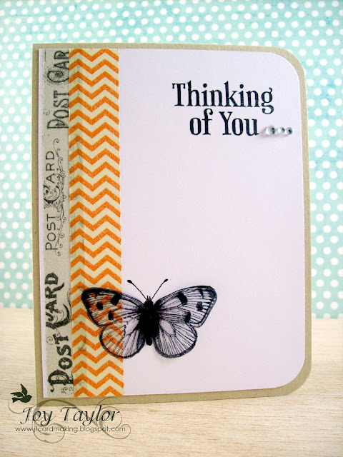 Hi there bloggers, Happy Sunday to you! I’m pleased to bring you another little Sunday inspiration card, courtesy of Joy Taylor! I love the clean and simple look and feel of this card, and yet it has little special touches that really make it pop! I’m such a fan of “Thinking of You” cards because is there anything more lovely than receiving something hand made for no reason at all?