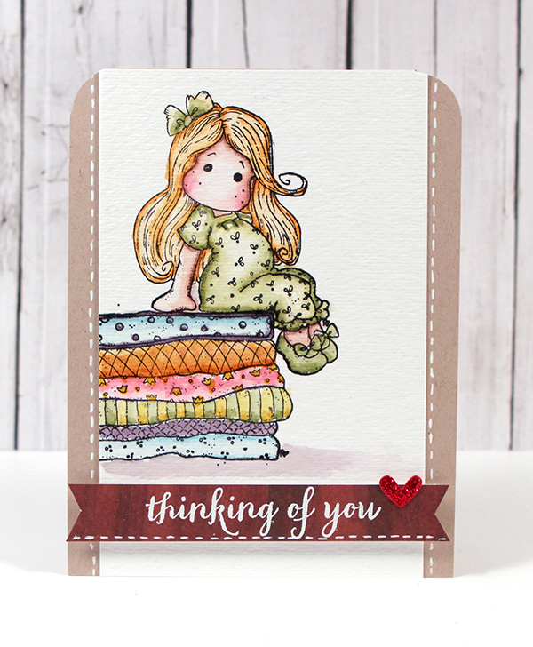 Today I have a card for you all made using a couple new Magnolia stamps from the Once Upon a Time collection: Princess Pea and Tilda’s Mattress. When you combine these two stamps, you get the cutest image! :)