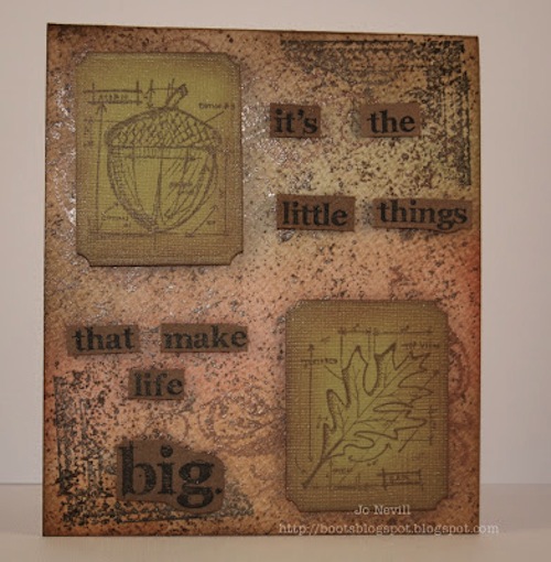 Jo used Tim Holtz 2012 Mini Blueprints as well as the following ingredients: