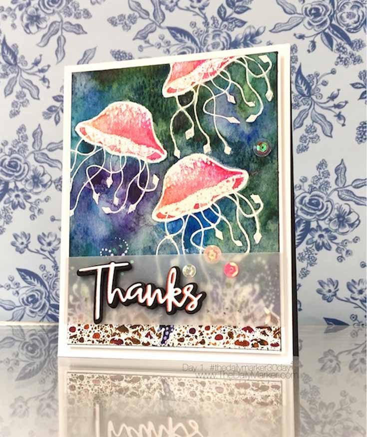 Coloring guru Kathy Racoosin knocked it out of the park with our Under the Sea stamp set! Want to see how Kathy watercolored this background? You can watch her tutorial on YouTube HERE. You can check Kathy’s original blog post HERE.