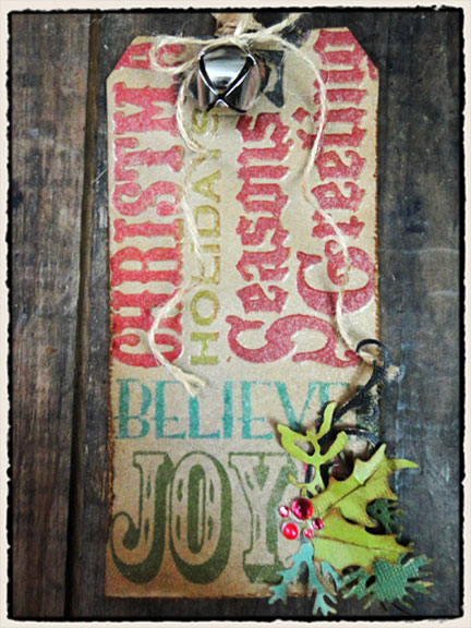 I am loving Day 3 of Tim Holtz’ 12 Tags 2011! What do you think? Not only the letter press style, but also the custom stamp color technique is creatively fun and efficient for mass producing holiday cards and tags this season.