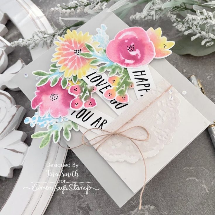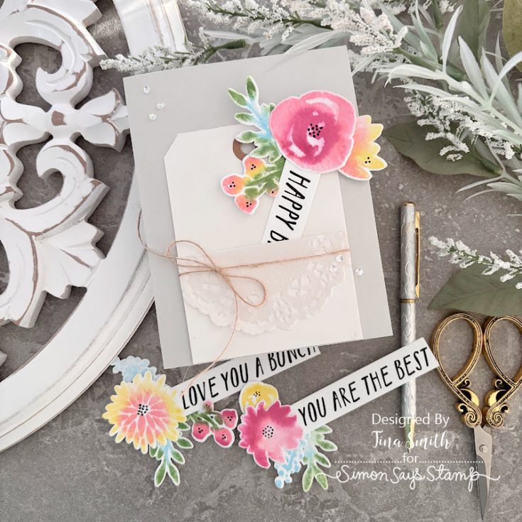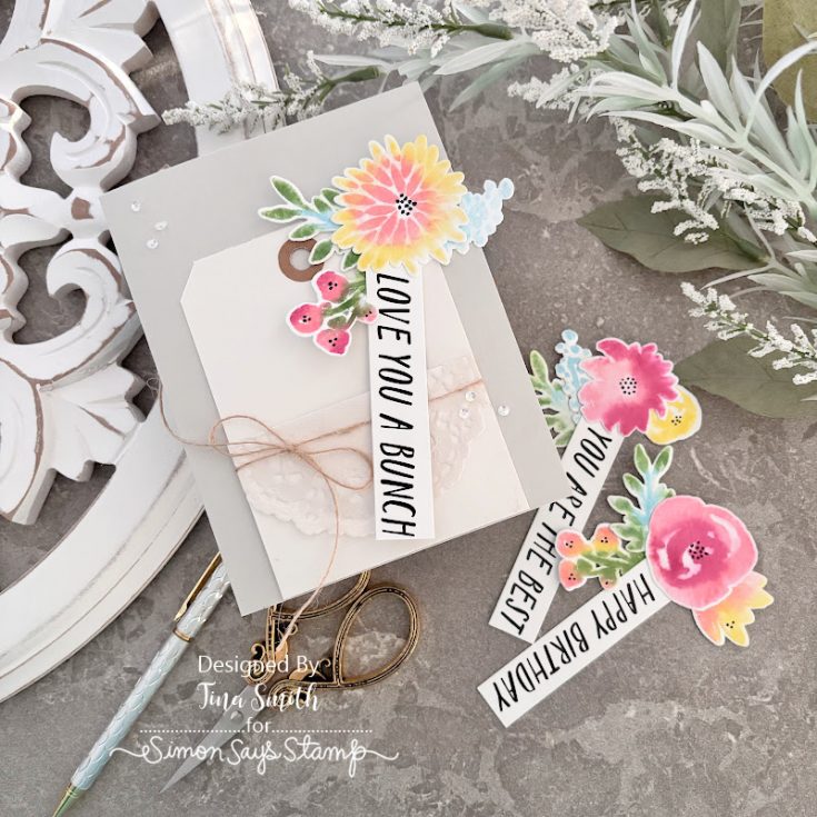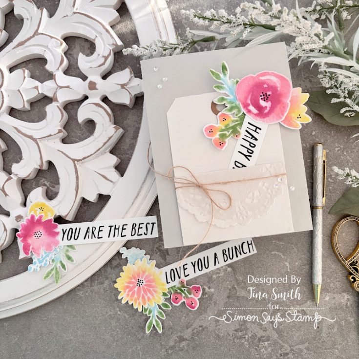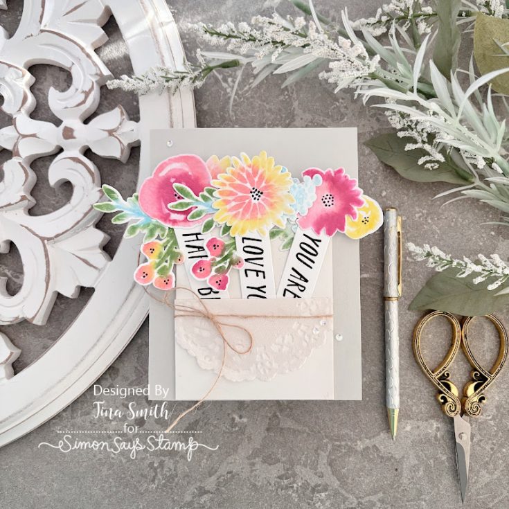 Ditch the boring, flat cards—we’re leveling up today! Hi everyone, Tina here! I’m in love with this new project: a cute pocket made from a #8 tag stuffed with dreamy watercolor blooms. I used the Simon Says Stamp March 2026 “Watercolor Bouquet” Card Kit, which is honestly loaded with everything you need. I’ll show you my secrets for making stamped flowers look like hand-painted masterpieces using just the tools in the kit. Also, can we talk about the new XL EZ Strips? They’re total game-changers! I tucked them into the pocket so each stem reveals a hidden sweet note. This was so much fun to make, and I hope it gets your creative gears turning for your next birthday card. Happy crafting!