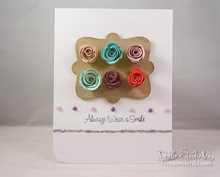 Made by Britta! Britta made pretty roses using Mini Rolled Roses Dies or you can get some pre-made like Prima’s North Country Avon Roses!