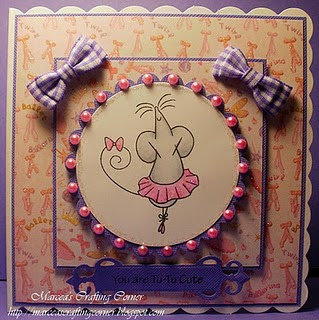 Made by Marcea! Marcea used pretty purple ribbon like the Hero Arts Floral Ribbon or May Arts’ Lavender Plaid Ruffle Ribbon!