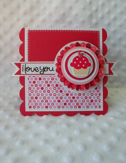 I love the pretty zig zag stitching around this card! The cupcake is adorable, but I also think the new Valentines Doodle-pops would be adorable too! Do you want a perfect scalloped edge like this one? This die is one of my favorite scallops!
