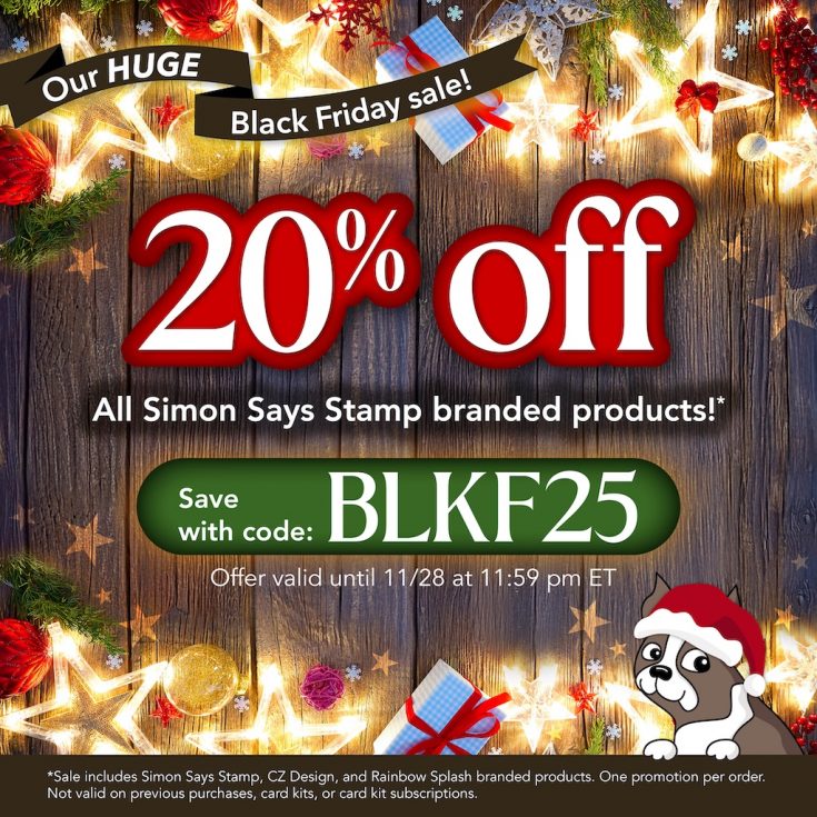 ’Tis the Season to Shop! Today we’re offering a stellar discount on our exclusive products—a treat we don’t offer very often! Use code BLKF25 at checkout to take 20% off all exclusive Simon Says Stamp branded items.