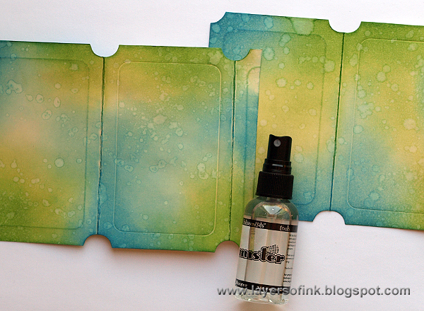 I wanted a vibrant background and inked the cardstock with Salty Ocean, Shabby Shutters and Mowed Lawn, using an ink-blending tool. Ink the panel that will be the front too.