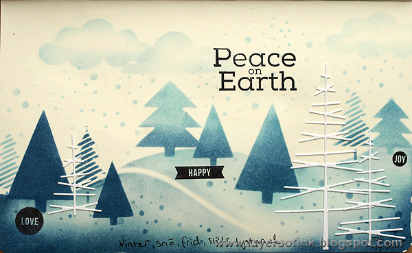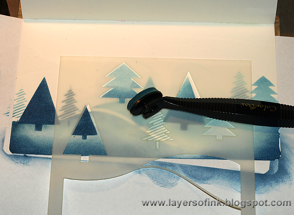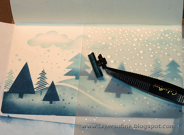 Wonderful stencil use for the wintry scene.