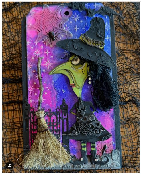 #89 Debbie Emmons -Lols loves how Debbie used the Tim Holtz Count Colorize Die Set to make such a super spooky witch! The background is fabulous and I love the textures and intiricate details. Just fantastic!