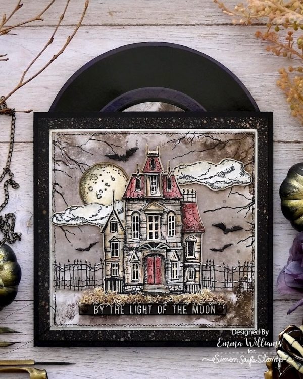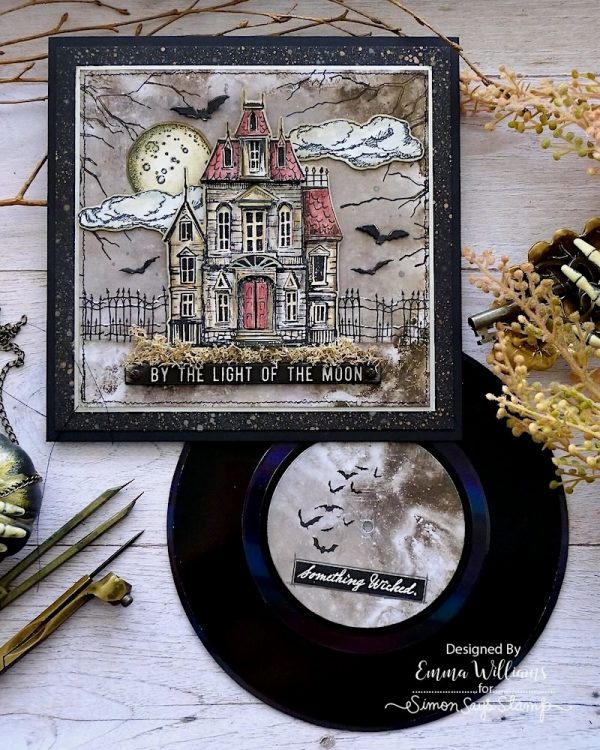 Emma was inspired by her love of music and in particular, her love of vinyl records and decided to recreate the look of vinyl, complete with a cover sleeve for her make. She created the vinyl record using Sizzix Opulence Black Cardstock and to decorate the cover, she used the Tim Holtz Sketch Manor Stamps and Simon Says Stamp Die Bundle, together with flying bats from the Haunted House Sizzix die set.