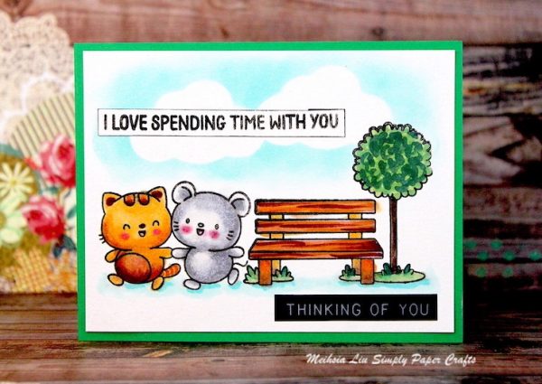 Meihsia was inspired to create a card using Simon Says Clear Stamps The Little Things and Tsukineko VersaFine ONYX BLACK Ink Pad on the background, and colored it with Copic SKETCH 72 PC SET B Markers.