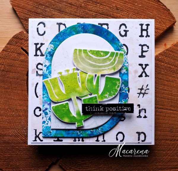 Macarena made a layered card using Simon Says Stamp Squovals Dies and Simon Says Stamps and Dies Mod Plants set. She mixed her favorite lately Distress Oxide Ink colors: blues and greens and placed everything on a stenciled base using Ranger Tim Holtz Distress Paste Black Opaque.