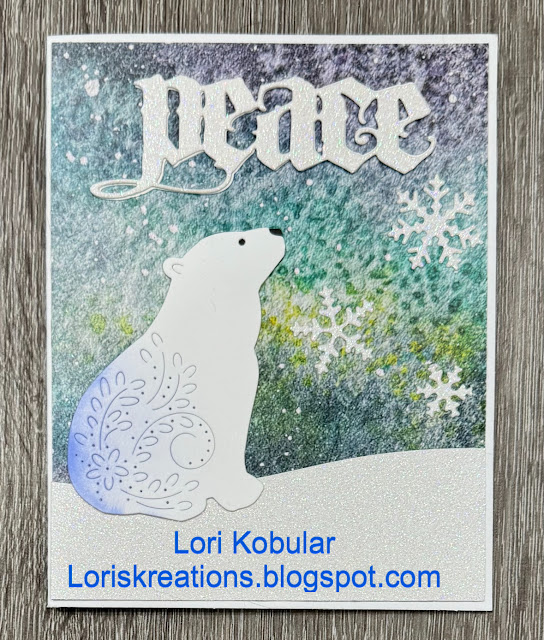 #105 Lori Kobular – Anna-Karin says: Lori made a beautiful and peaceful card. The textured background is lovely and I really like the look Polar bear and how he is looking up into the sky.