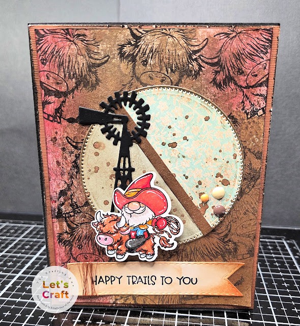 #13 Sabra Gerdes -Maura loves the fun style of Sabra’s card with its happy trails western theme. The embossed background adds a lovely note, and the splatters are perfect! What a fun card, Sabra!