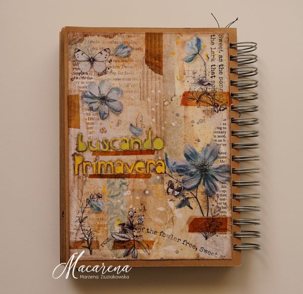 Macarena can’t wait for the Spring to come and explode in full bloom so she made an Art Journal page in search of Spring using Stamperia Create Happiness Secret Diary Selection of 5 Rice Papers as her background which she completed with AALL & Create Fly Around A5 Rub-Ons. The sentiment was cut out with Tim Holtz Sizzix Alphanumeric Cutout Lower die set.