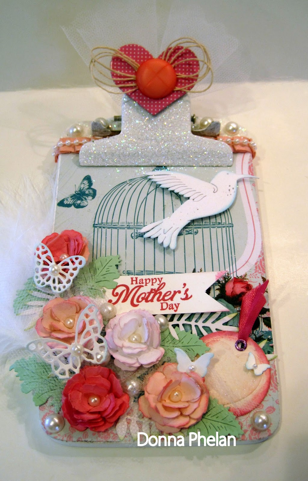 # 60 Silvia – Cathie says: I love this heart ornament! The colors and little pieces of ephemera, along with the flowers and button elements, give it a soft yet beautiful romantic look.