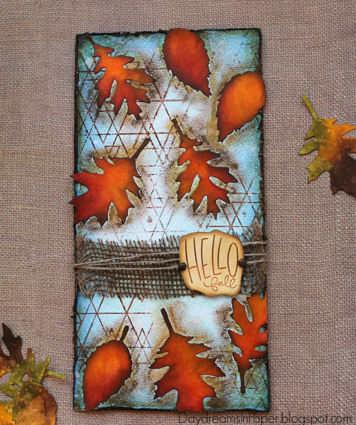 Cathie created a mixed media panel using Abstract Triangles and Autumn Greetings.