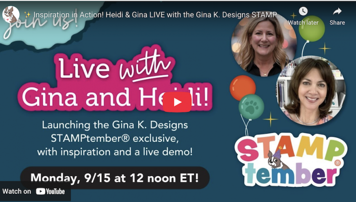 Hey friend! You won’t want to miss our founder Heidi LIVE with Gina Krupsky of Gina K Designs to unveil our highly anticipated Gina K Designs 2025 STAMPtember® Exclusive Limited Edition! Click or Tap the bell next to the ‘notify me’ button to be notified when we start, or just join us tomorrow (Monday, September 15th at 12 PM ET!) See you there!