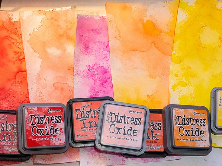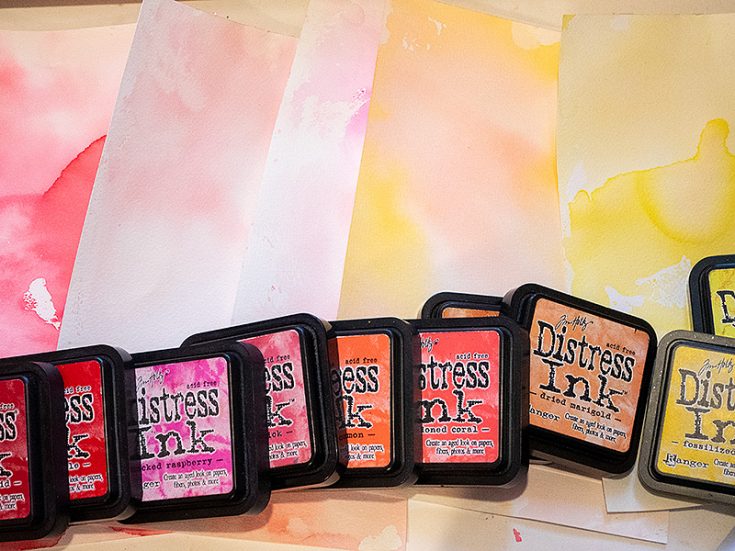 Smear Distress Inks on a non-stick craft sheet, mist with water and press watercolor paper into the ink.