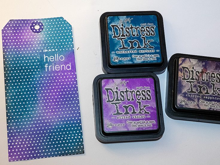Ink the background with Wilted Violet, Uncharted Mariner and a little Chipped Sapphire.