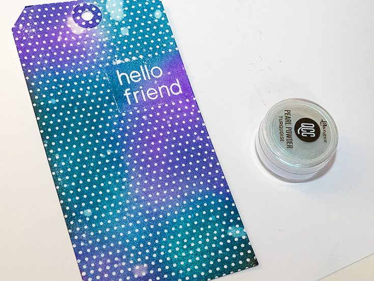 Here you can see the lovely shimmer of the pearl powder and Simon Says Stamp Silver Vellum.