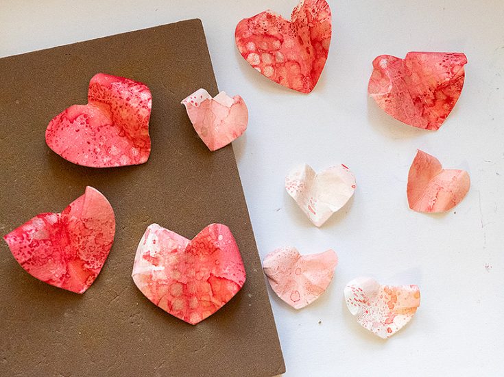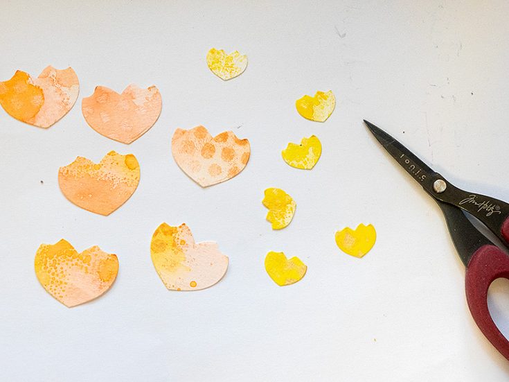 Die cut hearts from the prepared papers. I used five hearts for one of the flower designs and six hearts for the other. I used the three smallest heart dies from Simon Says Stamp Rounded Hearts.