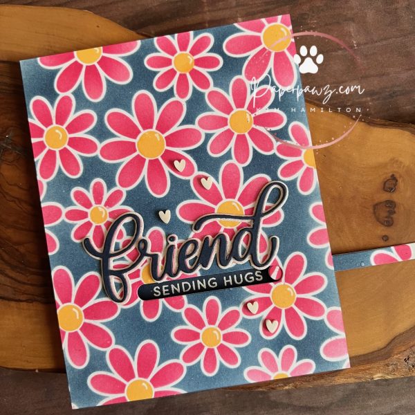 Kim used Lawn Fawn Daisy Bloom Background Stencil and Slide-on-Over Dies